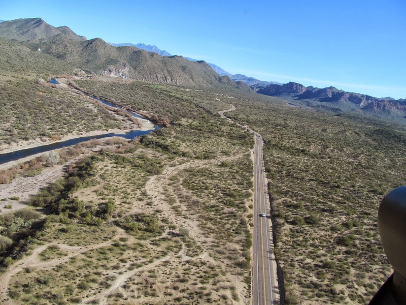| I was hoping to get a good shot of Weaver's needle, but we were always flying into the sun so there was glare on the cockpit widows. |